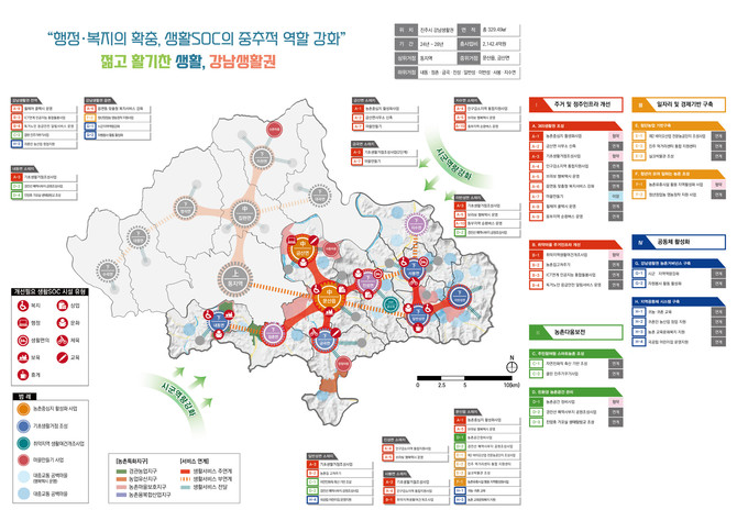 주요 사업으로는 '농촌중심지 활성화'와 '기초생활 거점 조성사업'이며, 농촌 읍면 소재지를 특성과 경쟁력을 갖춘 발전 거점으로 육성하고 배후 마을로 서비스를 전달해 주민들의 삶의 질을 향상시키고 지속 가능한 농촌공간을 조성하는데 목적을 두고 추진하고 있다.
