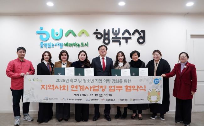 대구 수성구는 지난 19일 학교밖청소년의 직업 역량 강화를 위한 지역사회 연계사업 추진을 위해 관련 기관과 업무협약을 체결했다.