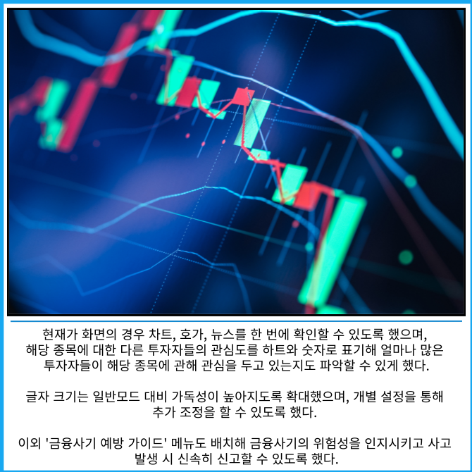 이번 서비스 도입은 투자자가 더욱 쉽게 MTS를 이용할 수 있게 하도록 한 것으로, 간결하고 직관적인 사용자 환경을 제공하고자 한다.