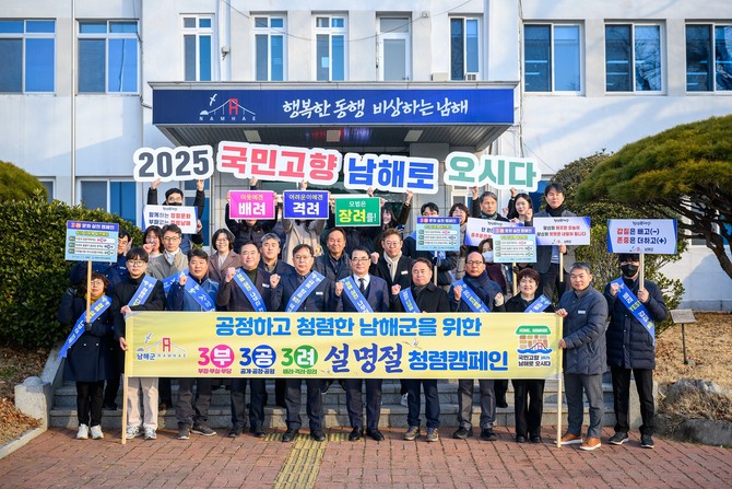 남해군은 그동안 '청렴 BOOM-UP 부서 릴레이', '청렴 실천 및 갑질 근절 선서식', '민원인 대상 청렴 알림문자 발송', '다함께 3부·3공·3려 운동', '홍보대사와 함께하는 청렴라디오 운영' 등 군민이 직접 체감할 수 있는 다양한 청렴 시책을 지속적으로 추진해 왔다.