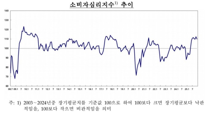 [프라임경제] 소비자 심리가 비상계엄 이후 11개월 만에 가장 큰 폭으로 하락했다. 고환율과 물가가 상승한 영향이다. 반면 집값 상승 기대감은 정부의 강력한 규제 대책에도 다시 반등했다.