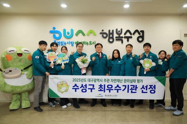 [프라임경제] 대구 수성구는 대구시가 주관한 '2025년 구·군 자연재난 관리실태 평가'에서 최우수 기관으로 선정됐다.