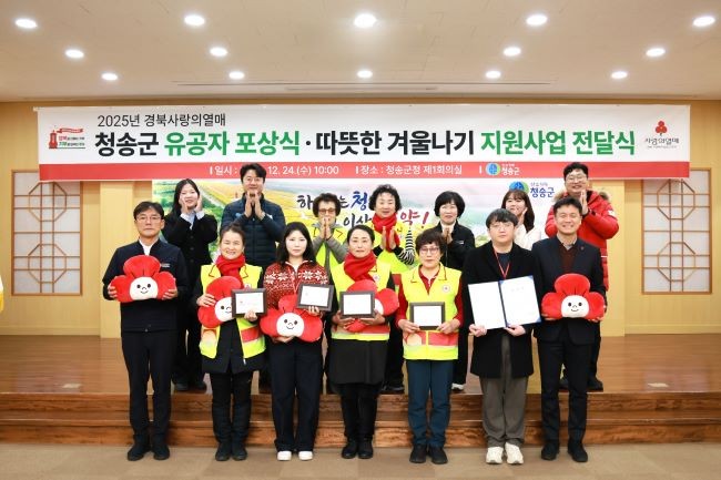 청송군은 지난 24일 군청 제1회의실에서 경북사회복지공동모금회(회장 전우헌) 주관으로 '2025년 따뜻한 겨울나기 전달식 및 사랑의열매 유공자 포상식'을 개최했다.