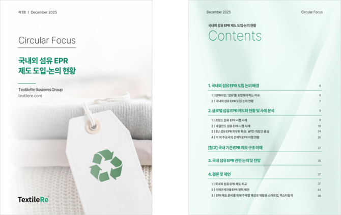 텍스타일리는 이런 흐름을 리포트에 담았다. 보고서는 4개 파트로 구성했다. 1부는 EPR 개념과 섬유 편입 필요성을 정리했다. 폐섬유 발생 현황과 재활용 실태도 함께 제시했다.
