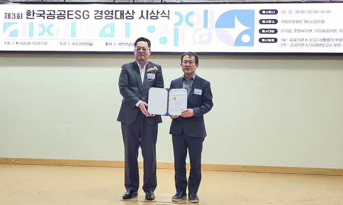 이번 시상식은 한국공공ESG연구원이 주최하고 국회 이소영 의원실이 주관했으며, 공공기관의 ESG경영 수준을 객관적으로 평가해 우수 사례를 발굴·확산하기 위해 마련됐다. 한국공공ESG연구원은 공공기관 경영평가와 자문을 수행해 온 교수·전문 연구진으로 구성돼 있으며, 정부 K-ESG 가이드라인 이행 수준과 보고서 완성도를 종합 평가해 수상 기관을 선정한다.