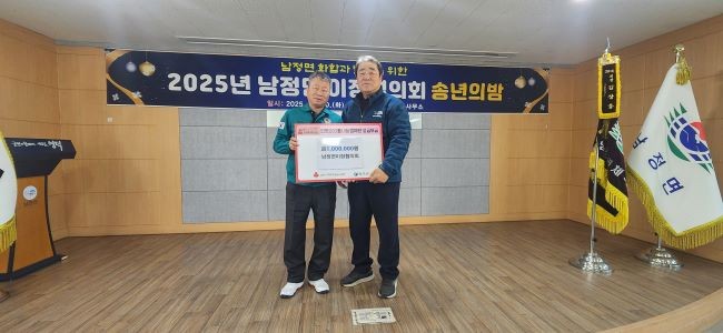 [프라임경제] 영덕군 남정면이장협의회(회장 최규한)는 지난 30일 남정면사무소 2층에서 개최된 송년의 밤 행사에서 '희망나눔성금' 100만원을 기탁하며 지역사회에 따뜻한 온기를 전했다.