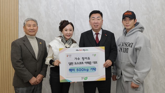 [프라임경제] 트로트 가수 청이 씨와 이재준 딜런도스코프 대표가 연말연시를 맞아 지역사회를 위한 따뜻한 나눔에 나섰다. 두 사람은 31일 청주시청을 방문해 지역 취약계층 지원에 사용해 달라며 백미 500kg를 기탁했다.
