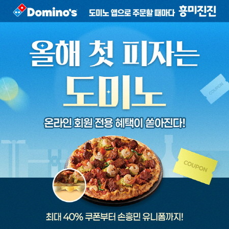 또 1월 중 도미노피자 모든 피자(M·L)를 구매한 회원에게는 'LA 치즈폴레 갈비 스테이크 피자' 배달 30%, 포장 40% 할인 쿠폰을 1매씩 추가 제공한다.