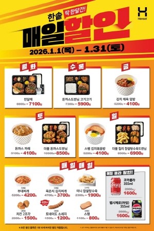 한솥도시락은 고물가 기조로 외식비 부담이 커진 상황에서 소비자의 체감 부담을 낮추고, 외식 수요가 상대적으로 감소하는 1월 가맹점의 안정적인 매출을 지원하기 위해 이번 행사를 마련했다고 설명했다.