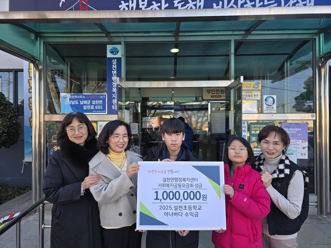 이번 기탁금은 지난해 11월 열린 설천초등학교 교내 축제 '2025 꿈끼 뿜뿜, 설빛 행복페스티벌'의 행사 중 운영된 '팡팡나눔, 아나바다 장터'의 판매 수익금으로 마련됐다. 학생들과 교직원들은 사용하지 않는 생활용품은 물론 직접 재배하거나 정성껏 준비한 농산물 등을 판매하며 나눔의 의미를 실천했다.