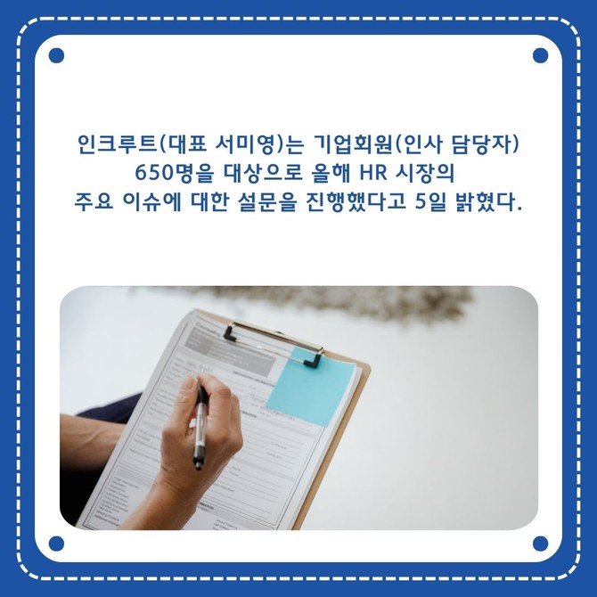 [프라임경제] 인크루트(대표 서미영)는 기업회원(인사 담당자) 650명을 대상으로 올해 HR 시장의 주요 이슈에 대한 설문을 진행했다고 5일 밝혔다.