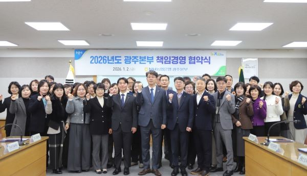 NH농협은행 광주본부(본부장 임철현)는 지난 2일, 관내 사무소장과 임직원 50여 명이 참석한 가운데 2026년 책임경영 협약식을 열고 올해 경영 전략 내재화와 실천 의지를 다졌다.