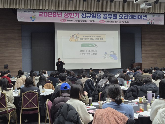 창원시는 지난 5일 신규임용 공무원 140명을 대상으로 '2026년 상반기 신규임용 공무원 오리엔테이션'을 실시했다고 밝혔다.