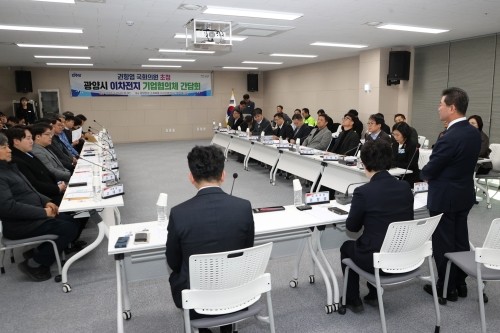 지난 2일 광양시는 광양만권 소재부품 지식산업센터 다목적홀에서 '권향엽 국회의원 초청 이차전지 기업협의체 간담회'를 개최해 기업들의 생생한 애로사항을 청취하고 실질적인 규제 개선 방안을 모색했다.