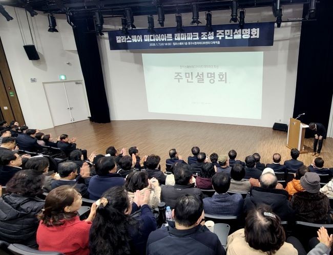 수성구 관계자는 "이번 주민설명회에서 제시된 다양한 의견을 적극 반영해 지역과 상생하는 문화공간으로 조성해 나가겠다"며 "칼라스퀘어 미디어아트 테마파크가 도시 변화를 견인하는 새로운 랜드마크로 자리매김하길 기대한다"고 말했다.