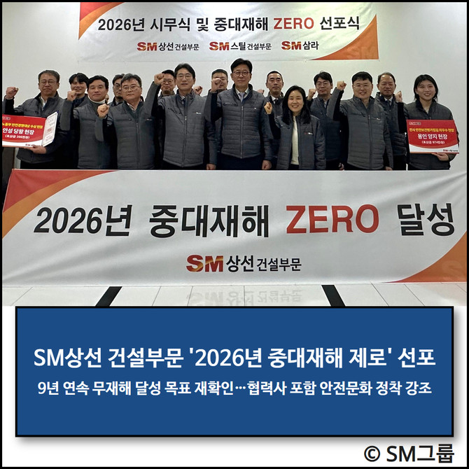 SM그룹의 건설부문 계열사 SM상선 건설부문은 지난 5일 서울 서대문구 SM그룹 신촌 사옥에서 '2026년 중대재해 제로' 달성을 위한 선포식을 열었다고 7일 밝혔다.