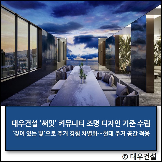 대우건설 관계자는 "이번 커뮤니티 조명 디자인 가이드라인은 써밋이 추구해온 공간 철학과 라이프스타일 가치를 빛으로 구체화한 결과물"이라며 "조명을 통해 공간 품격을 높이고, 입주민이 일상에서 차별화된 주거 경험을 체감할 수 있도록 지속적인 디자인 혁신을 이어갈 것"이라고 전했다.