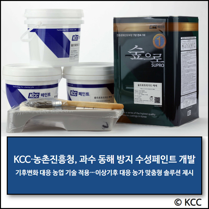 이번 제품은 KCC와 농촌진흥청 국립원예특작과학원의 공동 연구 협약(MOU) 및 국책 과제를 통해 개발됐다. 이는 이상고온과 추위 반복 등 기후 변화로 인한 과수 농가의 피해가 증가하는 가운데, 나무 내부 온도 변화 폭을 관리함으로써 동해 발생 위험을 낮추는 방안으로 기대를 모으고 있다.