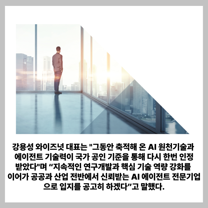[프라임경제] 와이즈넛(096250, 대표 강용성)이 중소벤처기업부가 주관하는 기술혁신형 중소기업 이노비즈(Inno-Biz) 재인증을 받으며 AI 기술 경쟁력과 지속가능한 사업성을 공식 인정받았다.