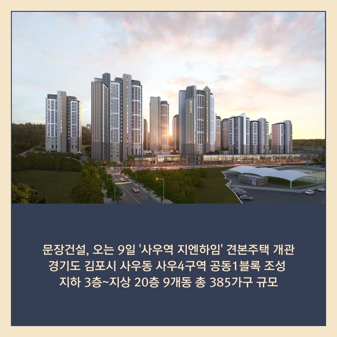 [카드] 문장건설 '사우역 지엔하임' 9일 견본주택 개관