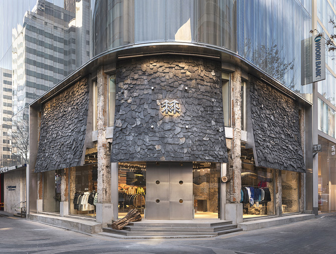 외관은 코너 입지를 살린 전면 파사드로 시인성을 높였으며, 내부는 생목과 금속, 콘크리트 질감을 활용해 절제된 분위기를 연출했다. 서로 다른 소재가 균형을 이루도록 설계해 자연과 연결된 브랜드 해석을 공간에 담았다.