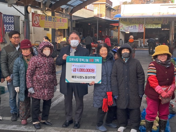 한편, 배둔시장 노점상인회는 매년 꾸준한 나눔으로 이웃사랑을 실천해오고 있다.