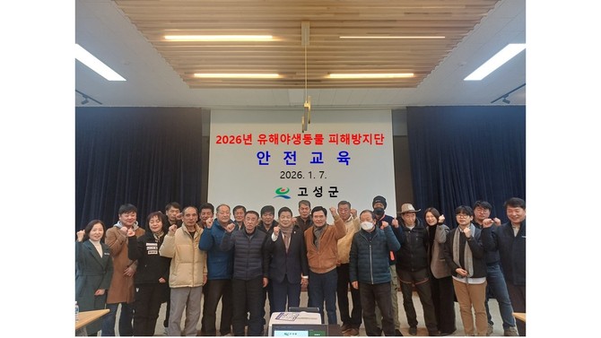 고성군은 2026년 유해야생동물 피해방지단의 운영을 위해 지난 1월7일 안전교육을 실시했다. 오는 1월10일부터 12월20일까지 유해야생동물 피해방지단의 본격적인 운영에 앞서 고성경찰서와 합동으로 교육을 시행했다고 밝혔다.