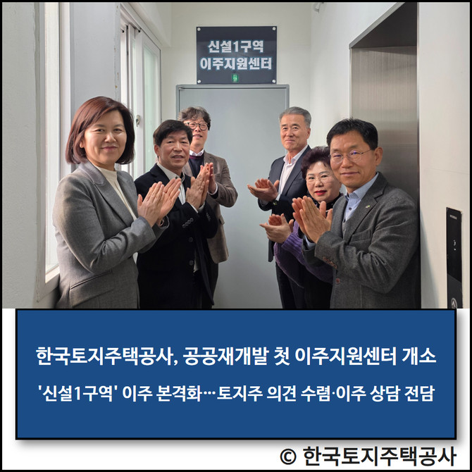한국토지주택공사(LH)는 공공재개발 최초로 신설1구역에 토지 등 소유자 의견 수렴과 이주 상담을 위한 이주지원센터를 개소했다고 9일 밝혔다.