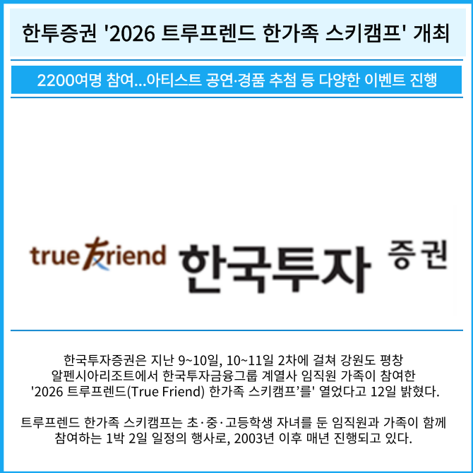 [카드] 한투증권 '2026 트루프렌드 한가족 스키캠프' 개최