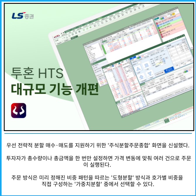 이번 개편은 약 6개월에 걸쳐 이뤄졌다. LS증권은 고객의견을 반영하여 최적의 트레이딩 환경을 제공하고 서비스 경쟁력을 높이고자 기능 개편이 추진됐다고 설명했다.