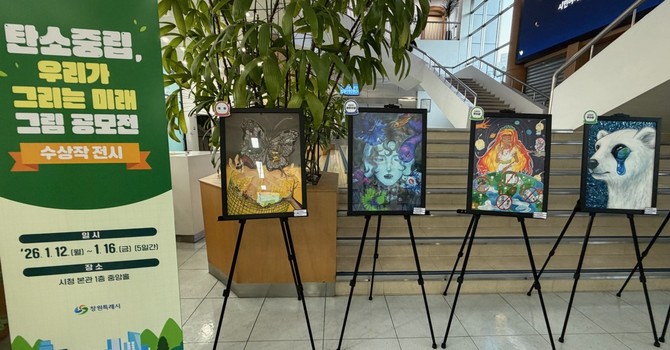 창원시는 미래세대의 눈으로 바라본 기후적응과 회복 메시지를 시민과 공유하기 위해 '탄소중립, 우리가 그리는 미래' 그림 공모전 수상작을 오는 1월12일부터 16일까지 시청 현관 1층 로비에서 전시한다고 밝혔다.