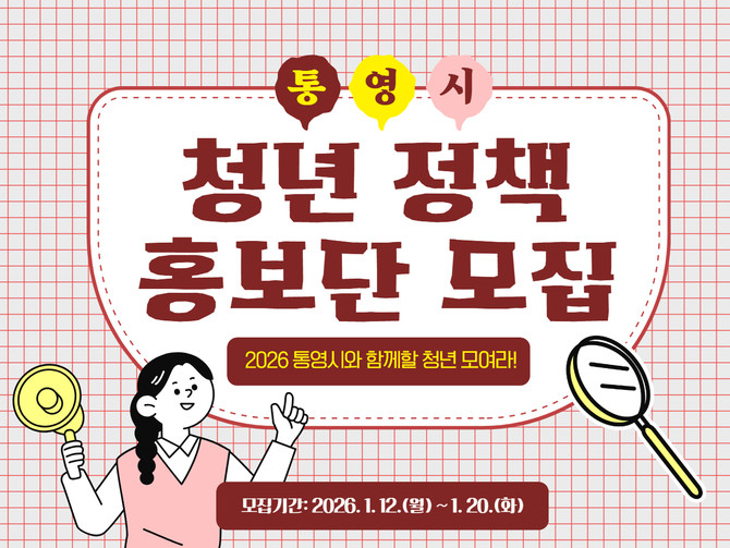 통영시는 청년정책에 대한 이해도를 높이고 정책 참여를 확대하기 위해 '2026년 통영시 청년정책 홍보단'을 모집한다고 밝혔다.