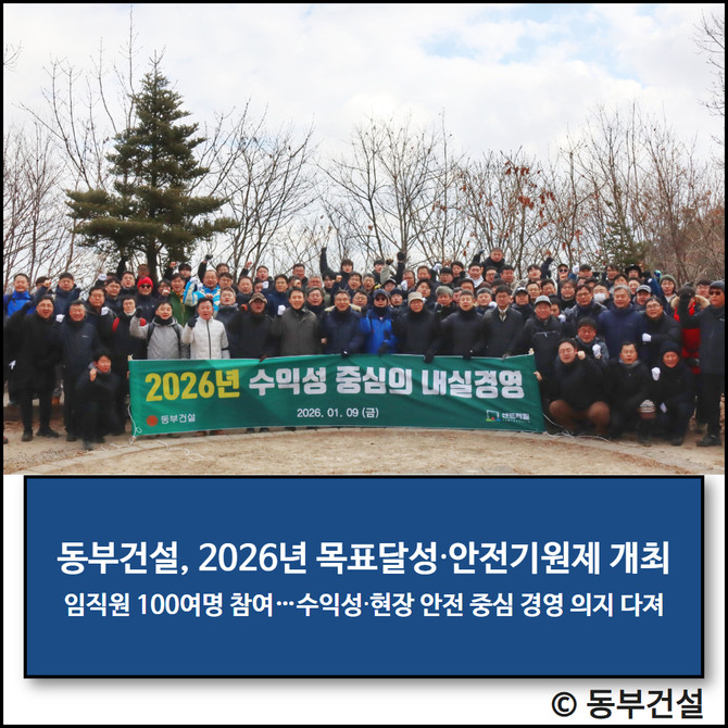 동부건설은 올해 △수익성 중심의 사업 선별 강화 △공정·원가·품질 관리 체계 고도화 △현장 중심 안전관리 강화 등을 2026년 핵심 실천 과제로 삼고, 전사적 실행력을 한층 높인다는 방침이다.