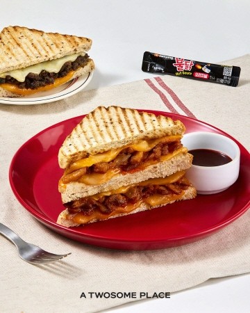 '불닭 치즈 멜트 파니니'는 삼양식품의 불닭소스 오리지널과 협업한 메뉴로, 매콤한 닭다리살에 콜비잭 치즈와 모짜렐라 치즈를 더해 강렬한 매운맛과 고소한 풍미를 동시에 살렸다. 제품 구매 시 불닭소스 오리지널을 함께 제공해, 소비자가 취향에 따라 매운맛의 강도를 조절할 수 있도록 했다.