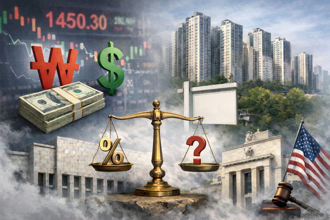 연초부터 1450원선을 웃도는 고환율과 수도권 주택시장 불안, 미국 통화정책 불확실성이 동시에 부담으로 작용해 한은의 정책 선택지가 사실상 좁아졌다는 분석이 나온다.