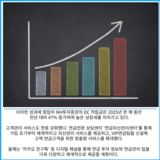 [프라임경제] NH투자증권(005940)은 고용노동부 주관 '2025년 퇴직연금사업자 평가'에서 2년 연속 우수사업자로 선정된 것을 기념해 오는 3월31일까지 퇴직연금 확정기여형(DC형) 신규가입 이벤트를 진행한다고 14일 밝혔다.