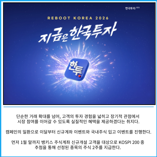 [카드] 한투증권 '리부트 코리아 2026, 지금은 한국투자' 캠페인 진행