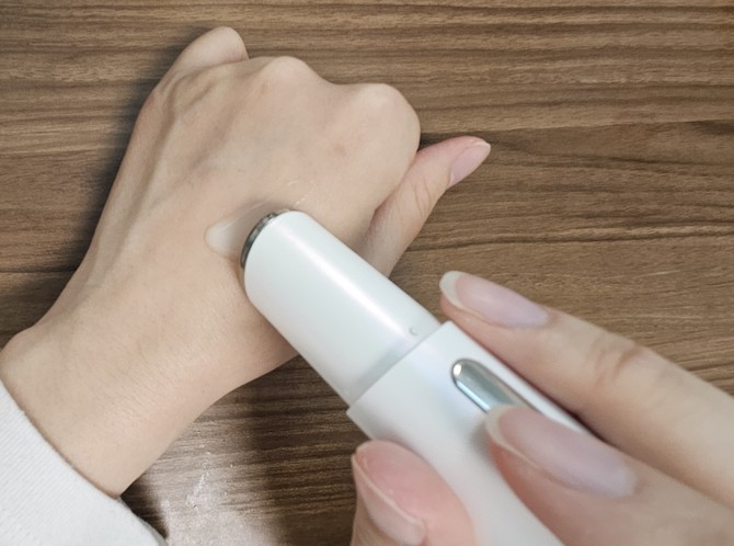 진동 소리와 함께 미세한 진동이 느껴지면서 화장품이 피부에 빠르게 스며들었다. 눈가·팔자주름·입술 등 국소 부위에 매일 1분만 사용해도 충분한 효과를 볼 수 있다.