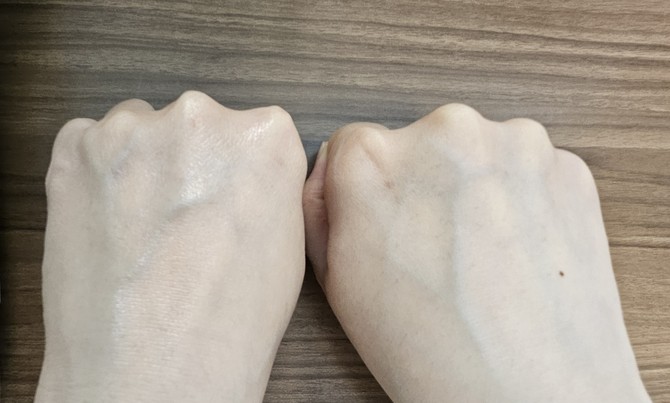 시범 삼아 한 손에만 기기를 사용해 비교해 봤는데 피부결이 바로 정리된 것을 확인할 수 있었다.