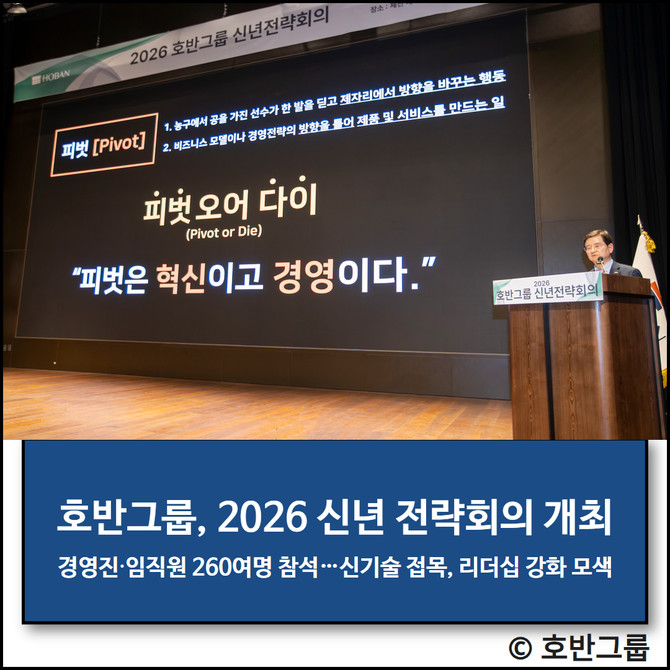 호반그룹은 지난 14일부터 15일까지 양일간 충북 제천 레스트리 리솜에서 '2026 신년 전략회의'를 열고 지난해 사업 성과 점검과 성장 전략을 논의했다고 15일 밝혔다.