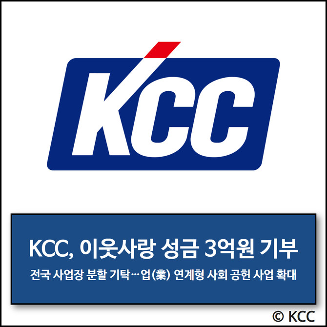 KCC(002380)는 사회복지공동모금회에 이웃사랑 성금 3억원을 기부하며 지역사회 나눔 캠페인에 동참했다고 15일 밝혔다.