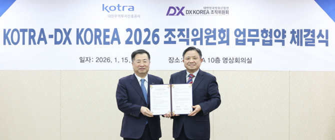 [프라임경제] DX KOREA 2026 조직위원회(위원장 박한기, 이하 위원회)는 국내 방위산업의 글로벌 경쟁력 강화·수출 확대를 위해 대한무역투자진흥공사(사장 강경성, 이하 코트라)와 업무협약을 체결했다고 16일 밝혔다.