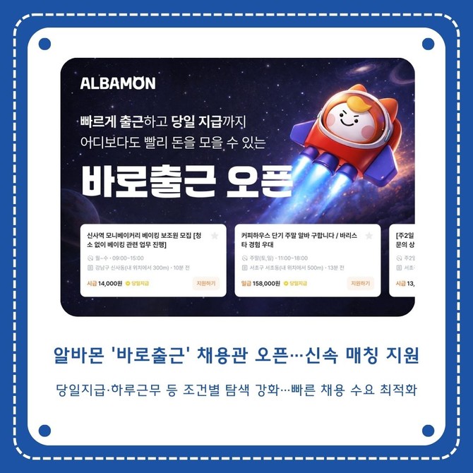 [카드] 알바몬 '바로출근' 채용관 오픈…신속 매칭 지원