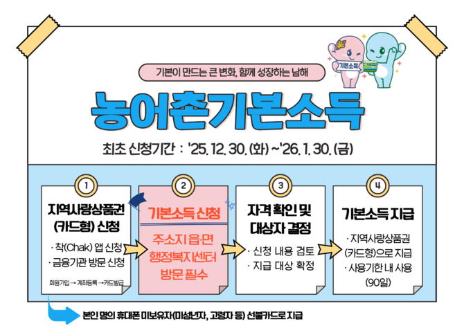 ■ "남해군 기본소득…착(chak)카드 만들고 행정복지센터 방문"