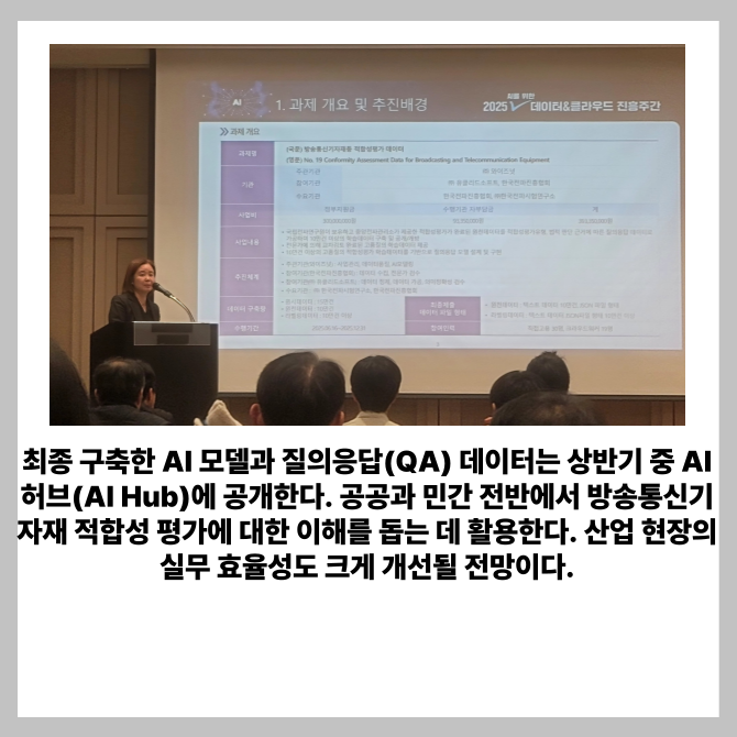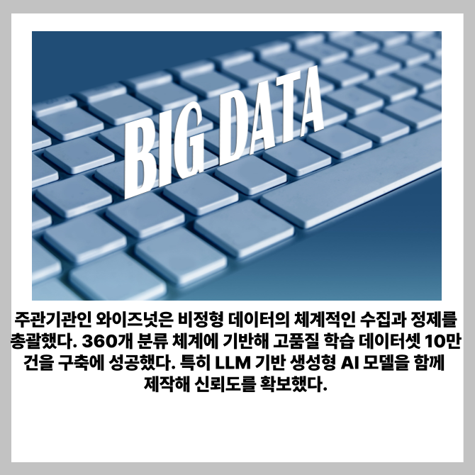 [프라임경제] 와이즈넛(대표 강용성, 096250)이 '방송통신기자재 등 적합성평가 데이터' 구축 사업을 성공적으로 마무리했다. 과학기술정보통신부가 주관하고 한국지능정보사회진흥원(NIA)이 지원하는 초거대AI 확산 생태계 조성 사업의 일환이다.
