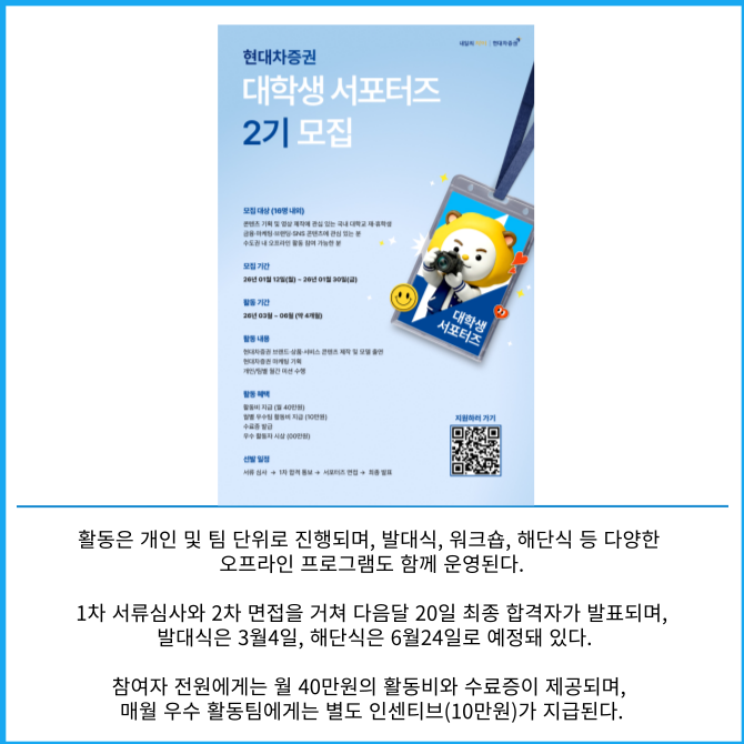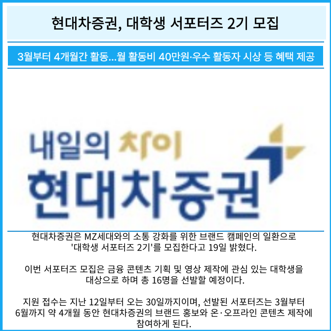 [카드] 현대차증권, 대학생 서포터즈 2기 모집