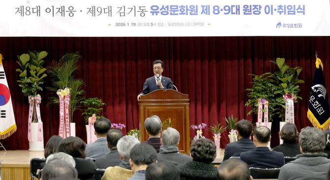 이날 행사에는 지역 문화예술계 관계자와 주민들이 참석한 가운데, 유성문화원 발전을 위해 헌신해 온 이재웅 전 원장의 노고에 감사의 뜻을 전하고, 김기동 신임 원장의 취임을 축하하는 자리가 마련됐다.