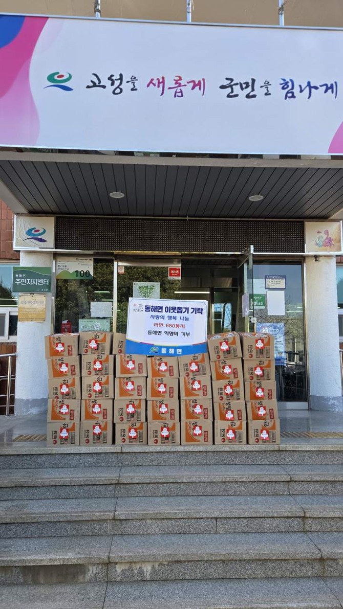 고성군 동해면(면장 류선미)은 지난 1월16일, 익명의 기부자로부터 라면 680봉지를 지정기탁 받았다고 19일 밝혔다.
