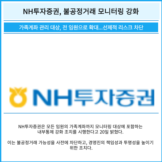 [카드] NH투자증권, 불공정거래 모니터링 강화