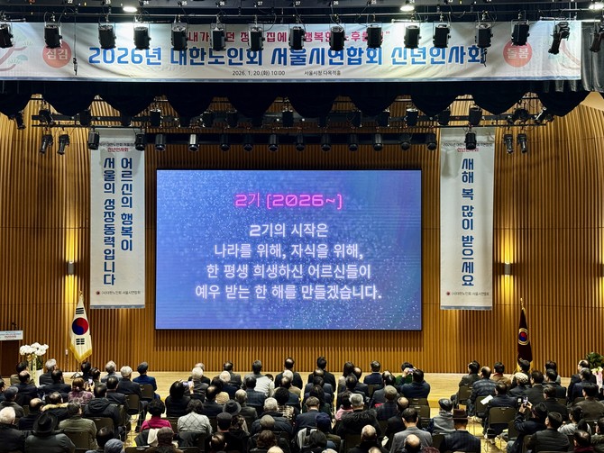 대한노인회 서울시연합회는 20일 서울시청 본관 다목적홀에서 '2026년 신년인사회'를 열고 향후 서울 노인정책의 핵심 방향으로 '에이징 인 플레이스(Aging in Place)'를 제시했다.